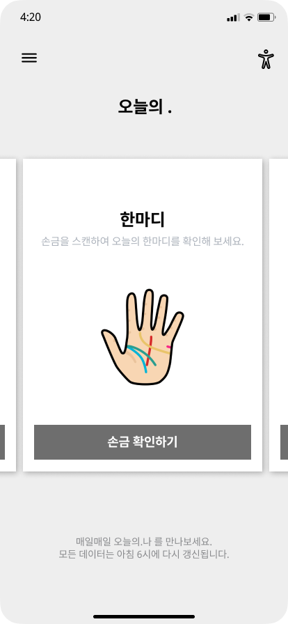 손금을 보고 오늘의 한마디를 확인해 보세요.