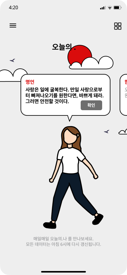 오늘의. 는 매일 아침 6시에 새롭게 확인하실 수 있습니다.